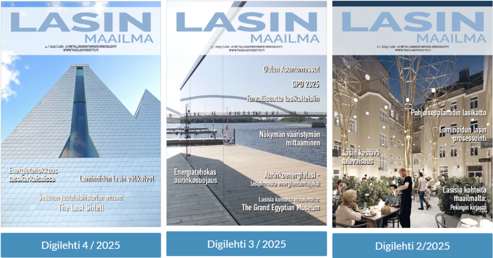 Suomessa on vain yksi aikakauslehti, joka keskittyy kokonaan lasirakentamiseen ja -arkkitehtuuriin - Lasin Maailma. Lehden toimituskunta seuraa aitiopaikalta jatkuvasti kehittyvää ja laajentuvaa lasiteollisuutta, sen trendejä ja rakennettuja kohteita.